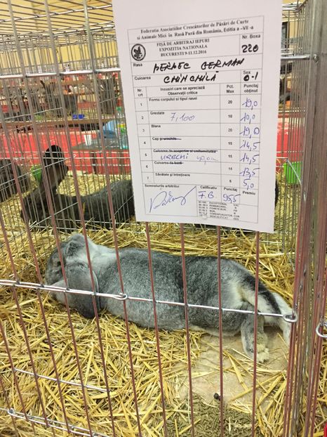 Am participat anul acesta cu 15 iepuri ,din care 11 berbeci si 4 pestriti germani si am obtinut urmatoarele rezultate:
